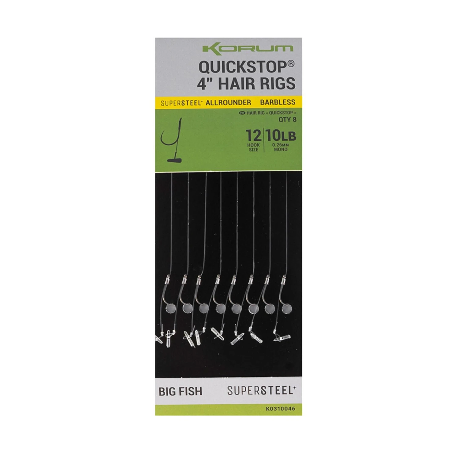 Lot de 8 hameçons Korum big fish braided hair rigs 6″ barbed