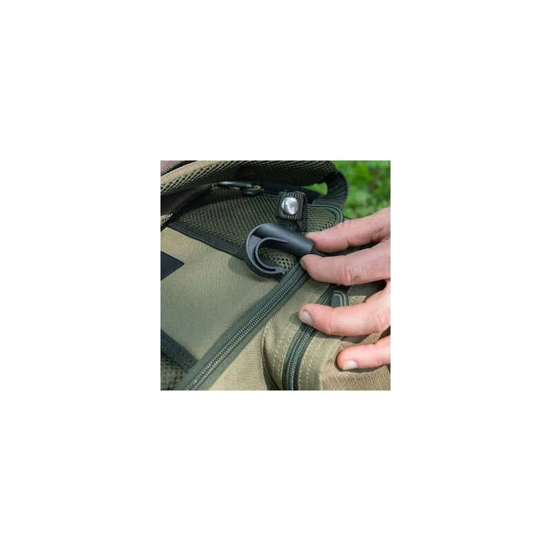 Cette version compacte de notre populaire Ruckbag. Il possède notre système unique de transport de votre chaise ainsi que nouvelles améliorations. Il possède deux boucles velcro sur el dessus afin d’y placer épuisettres pliantes et piques, quatre anneaux afin d’y fixer des mousquetons ainsi que notre étuis Transition compatible avec tous les nouveaux tapis de réception Transition.